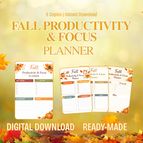 Fall Productivity and Focus Planner Printable | Autumn Goal Setting Organizer | Seasonal Focus Planner | PDF PNG Instant Download