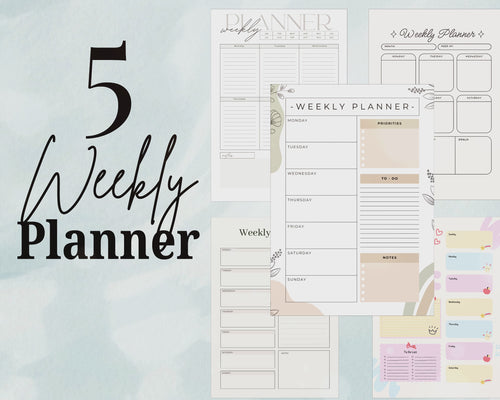 5 Printable Weekly Planner PDF PNG | Minimal Weekly Planning Pages | Productivity & Time Management Planner | Instant Download